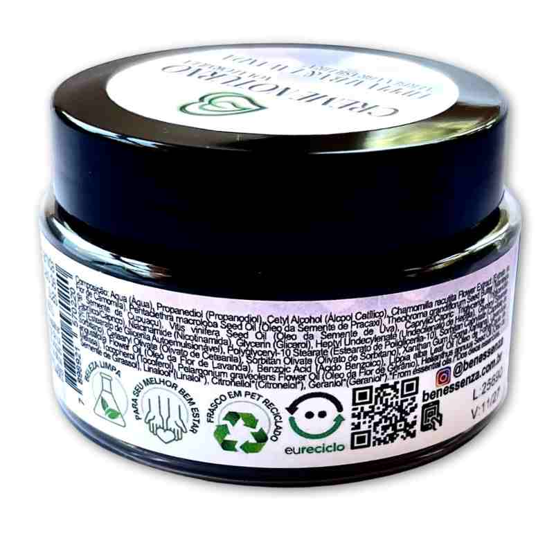 Agora com óleo essencial de verbena brasileira (lippia alba) e extrato de camomila, além de niacinamida (vitamina B3) e óleo essencial de lavanda. Hidrata e regenera profundamente a pele, melhorando a firmeza da pele suavizando as marcas de expressão. A Niacinamida (vitamina B3) uniformiza o tom da pele, atenuando manchas de melasmas e aparência de poros dilatados, equilibra a oleosidade e contribui no tratamento de acnes e espinhas.